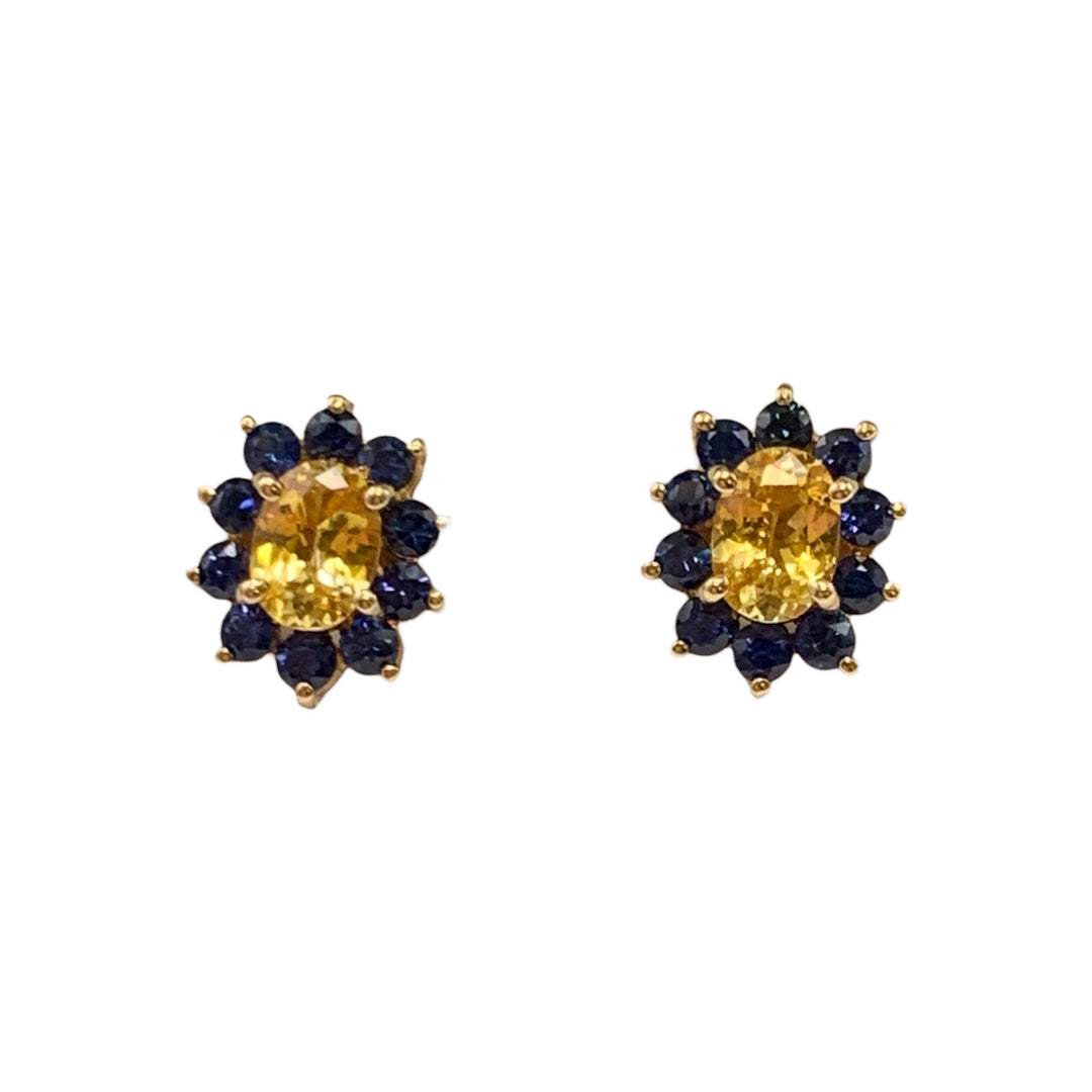 14k Yellow Gold Stud Yellow Sapphires Estate Earrings