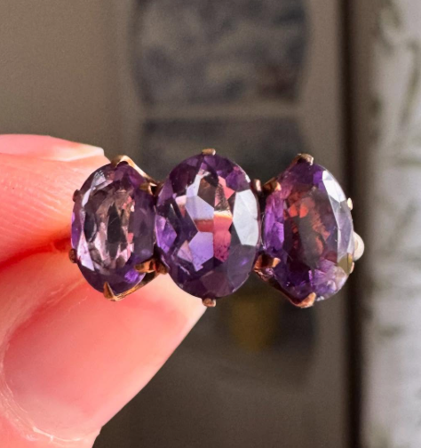 14k Yellow Gold 3 Stone Ruby Estate Ring