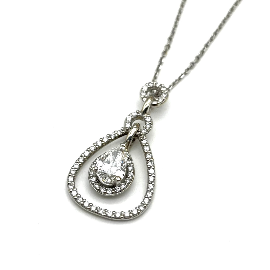 14k White Gold Diamond Drop Diamond Estate Pendant