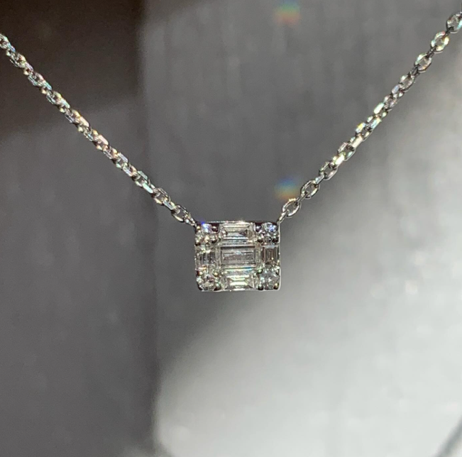 14k White Gold Diamond Cluster Diamond Estate Necklace