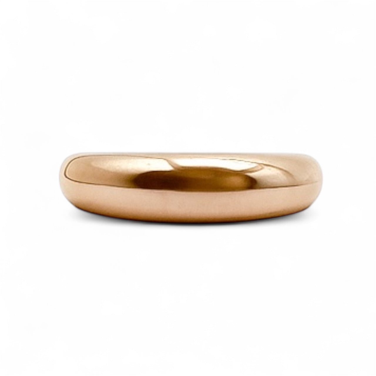 Elegant pre-loved 14k rose gold dome ring featuring a sleek, high-polished finish that radiates timeless sophistication. Crafted with refined artistry, this classic piece offers a smooth, rounded profile and warm blush tones of rose gold. Weighing 1.5 dwt and sized for a finger size 5, it’s a chic statement of enduring beauty and style.