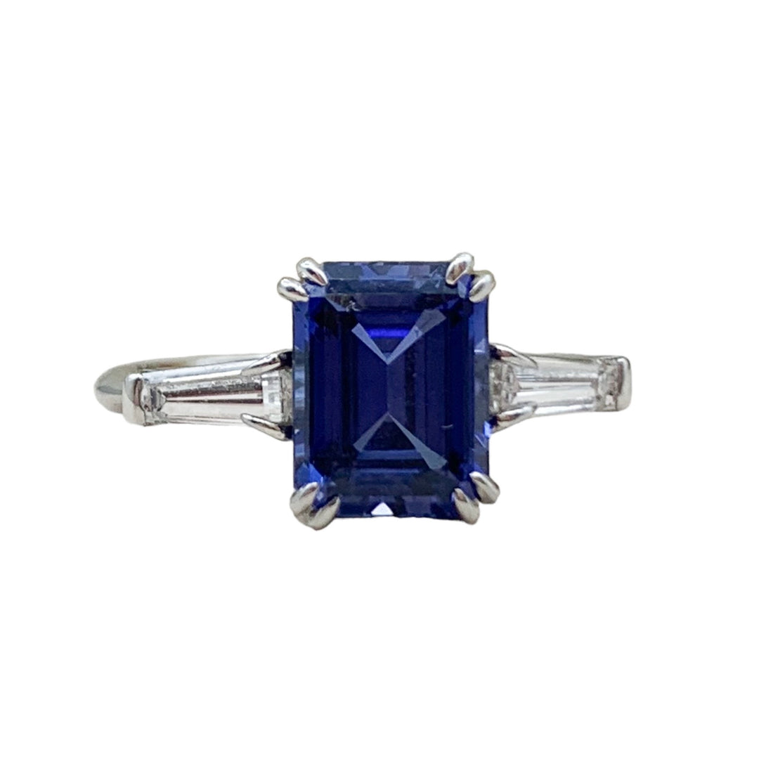 Platinum White Gold Lab Grown Sapphire Estate Ring
