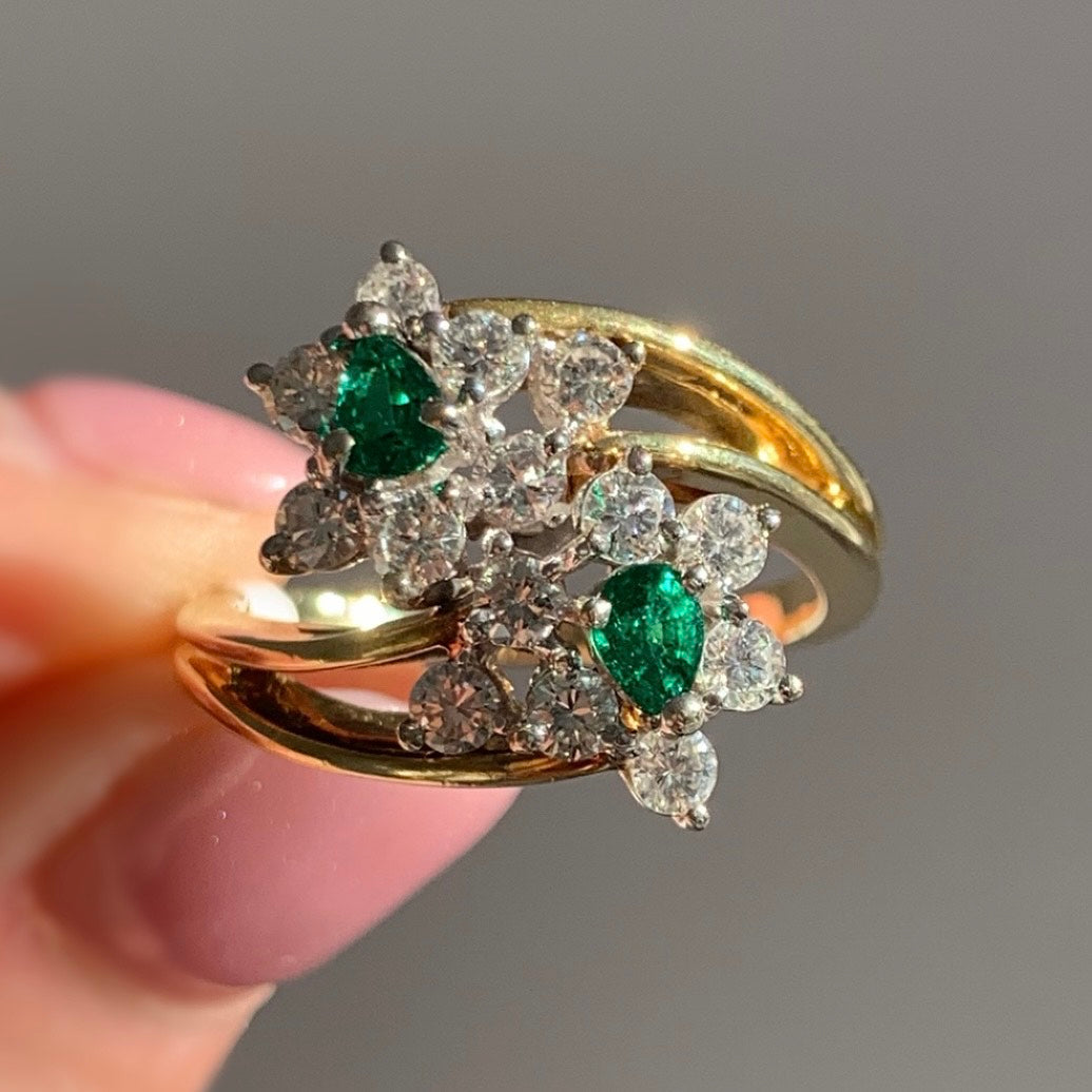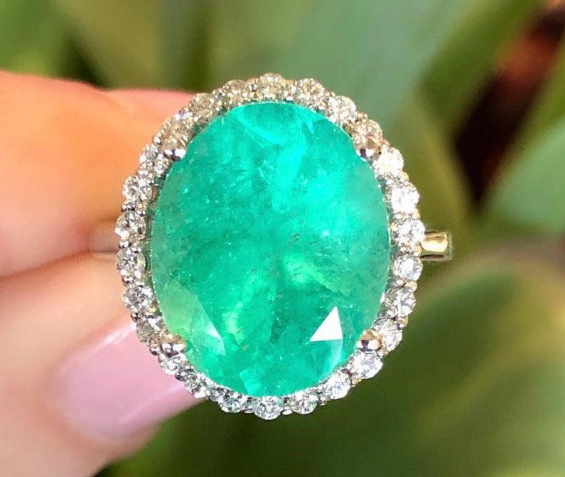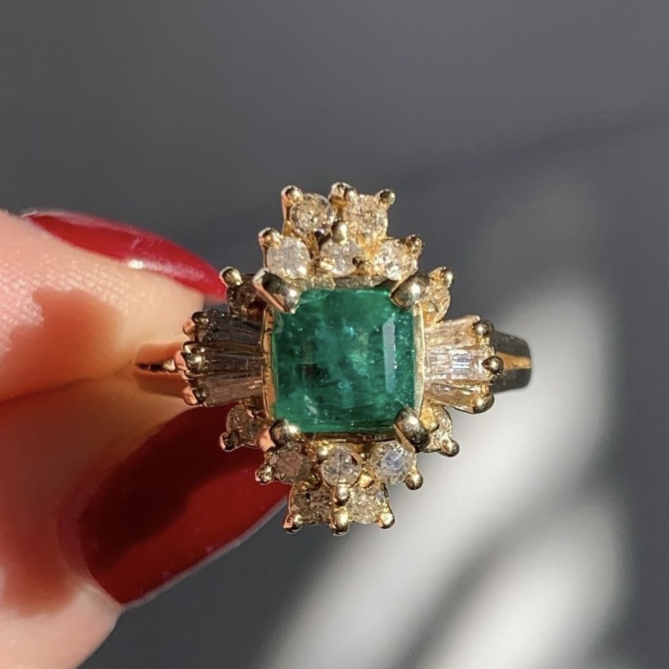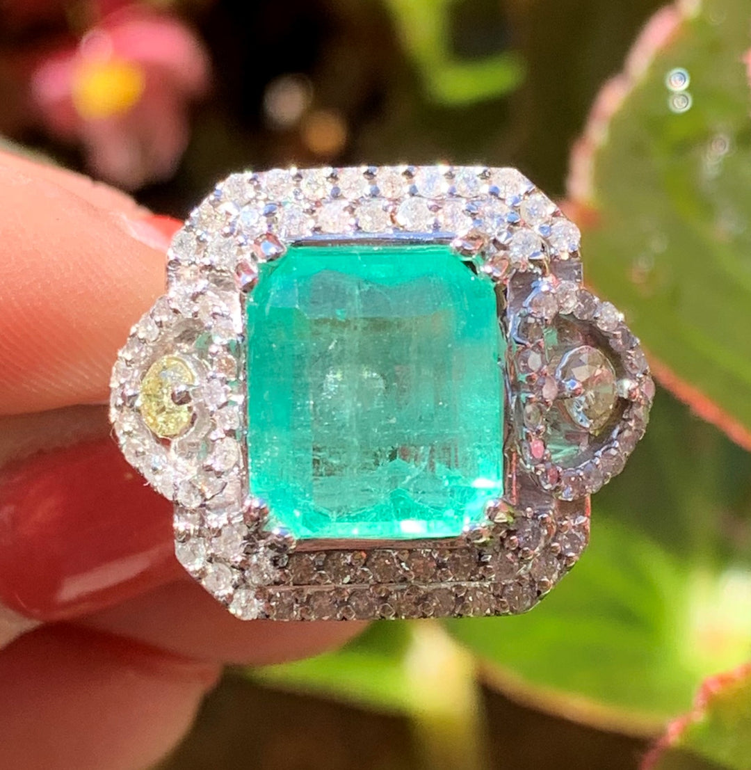 18k White Gold Gemstone Ring Emerald Estate Ring