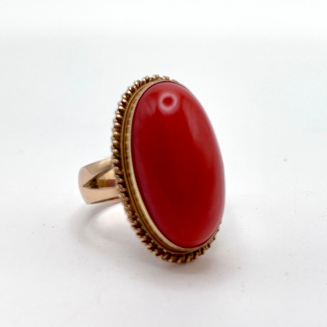 18k Yellow Gold Gemstone Ring Coral Estate Ring
