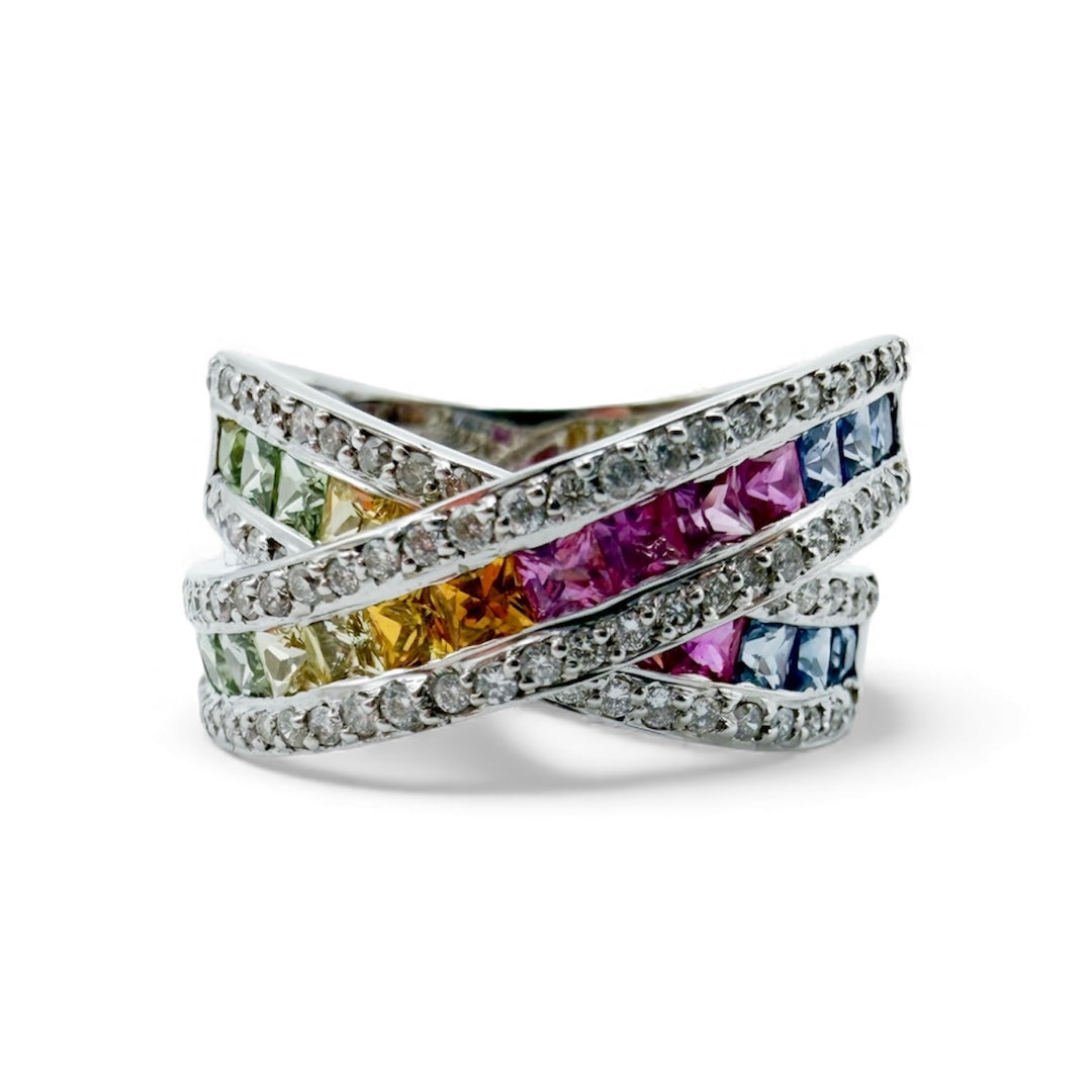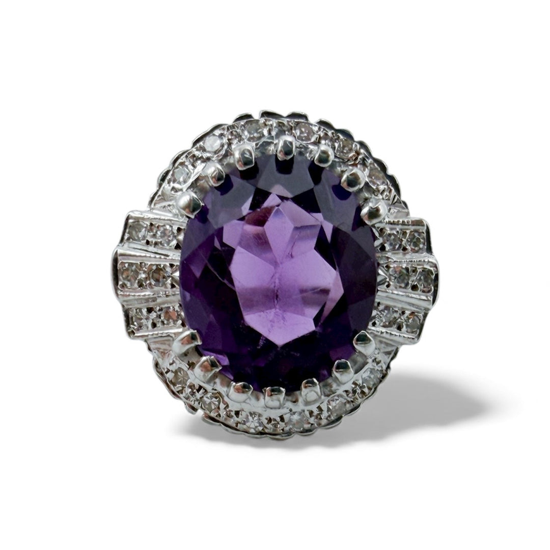 14k White Gold Gemstone Ring Created Sapphire Estate Ring