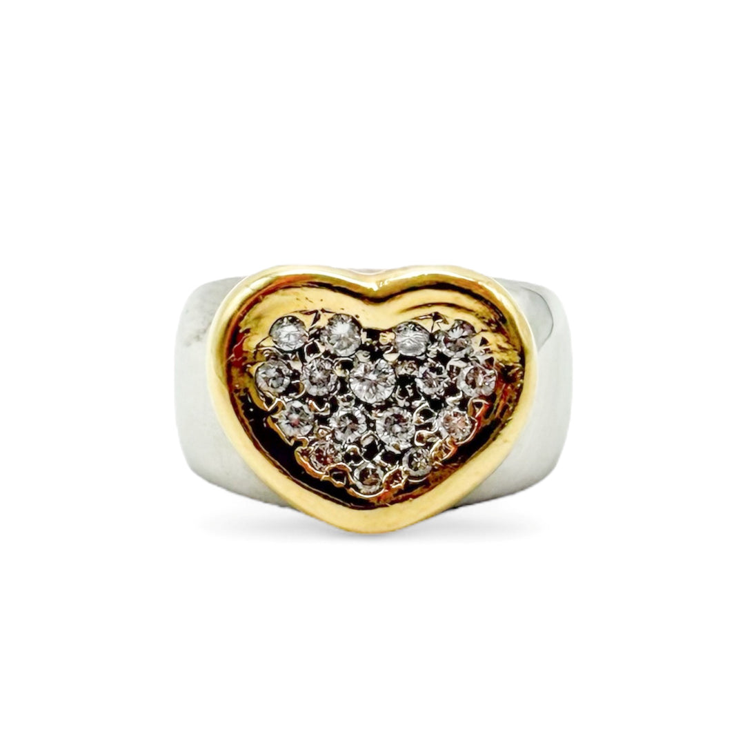 18k Two Tone Estate Heart Ring