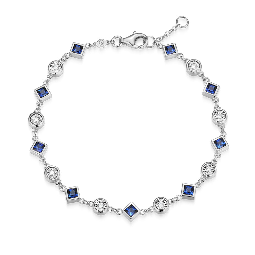 Sterling Silver Lab Sapphire Diamond Bracelet