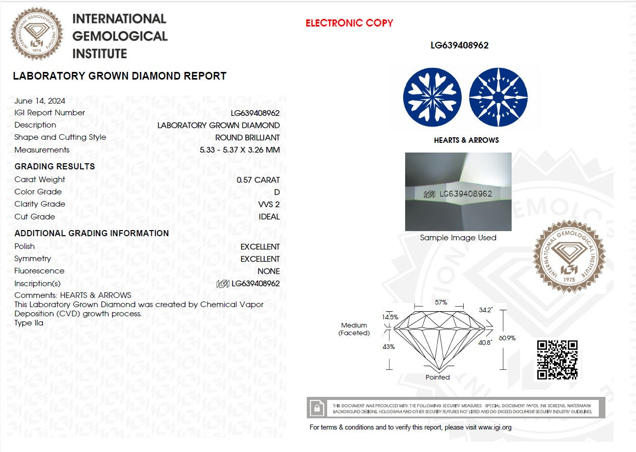 0.57ct D VVS2 Round Lab Grown Diamond #23076 IGI# 639408962
