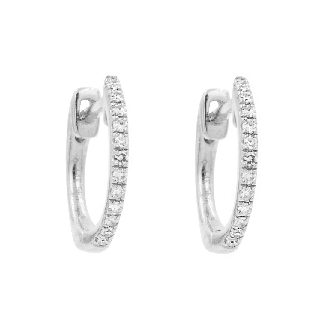 14k White Gold Huggies Diamond Earrings 0.08 cttw
