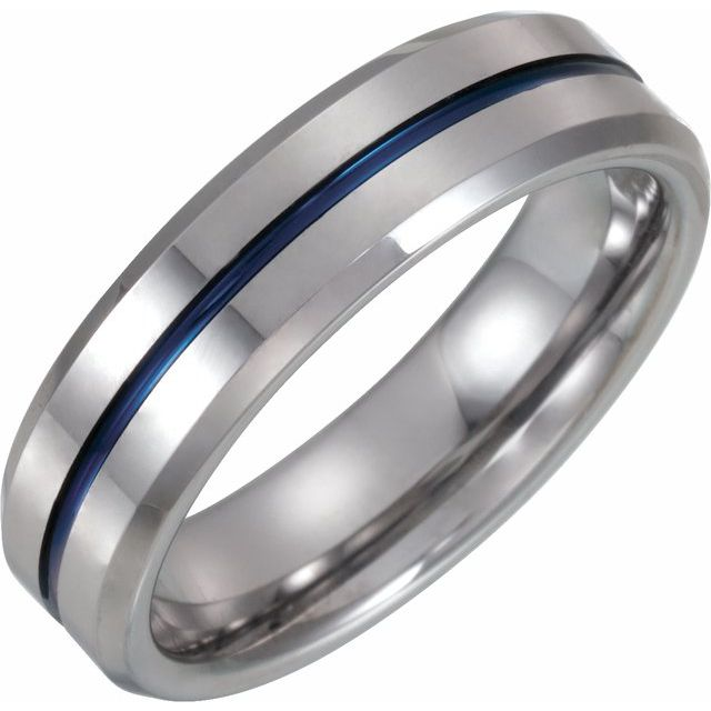 Tungston and blue enamel Polished Wedding Band