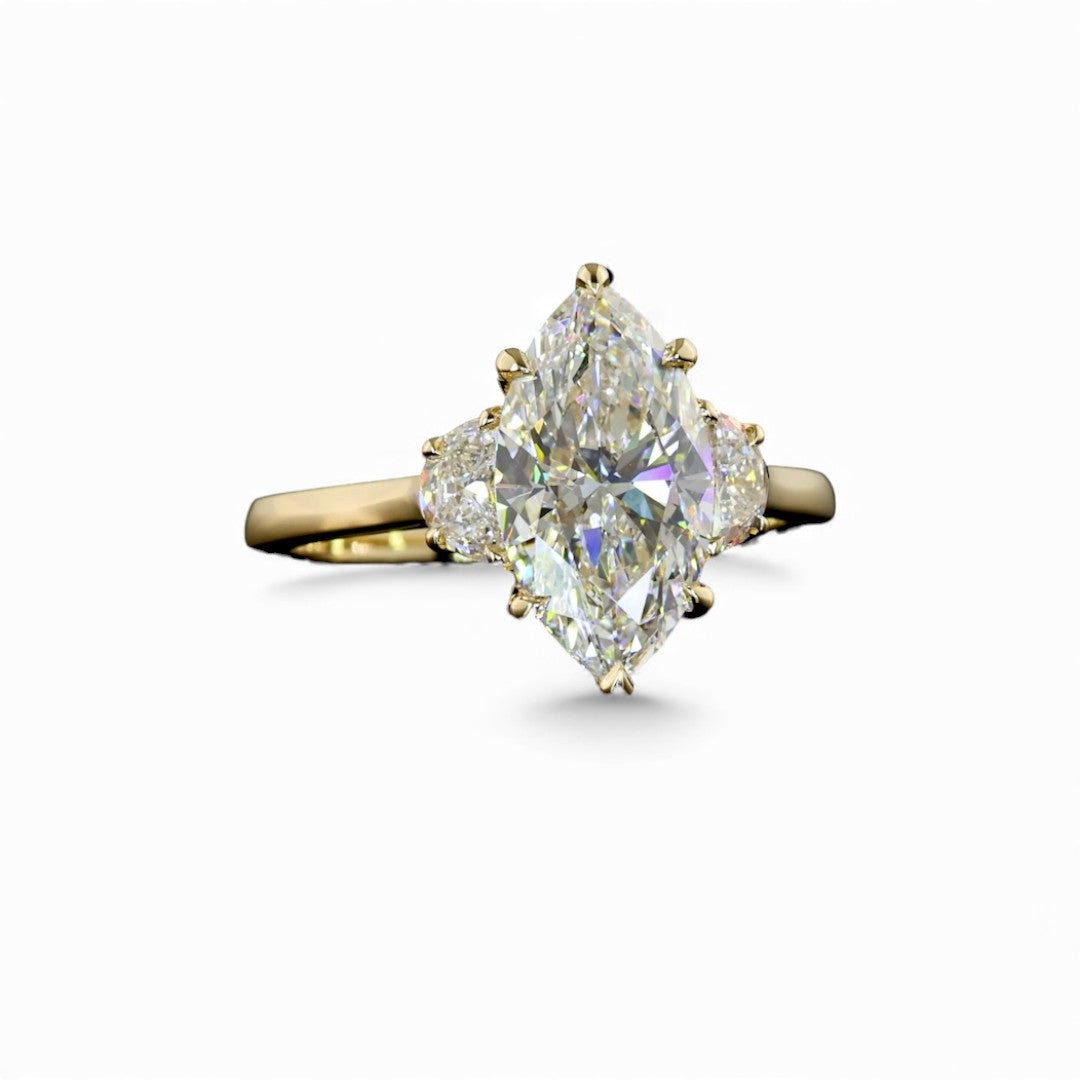 14k Yellow Gold 3 Stone Lab Grown Diamond Engagement Ring