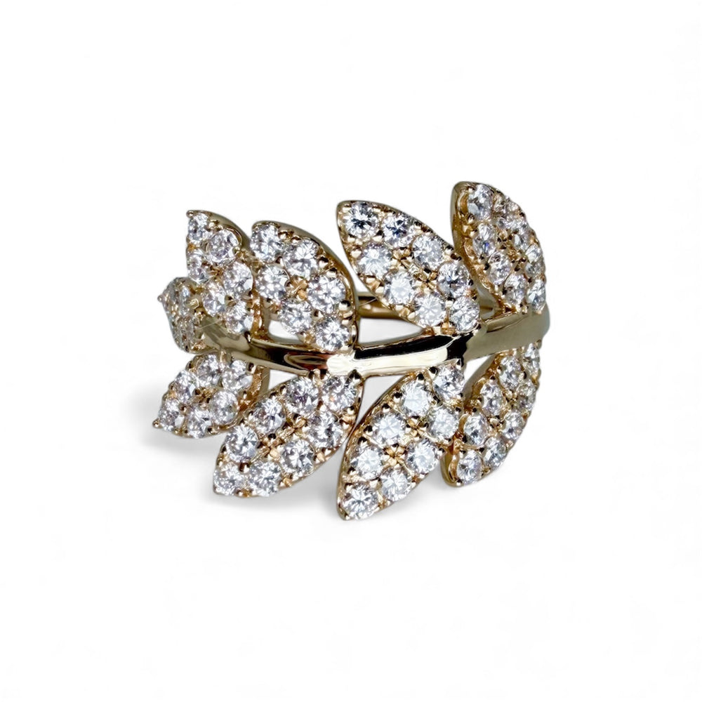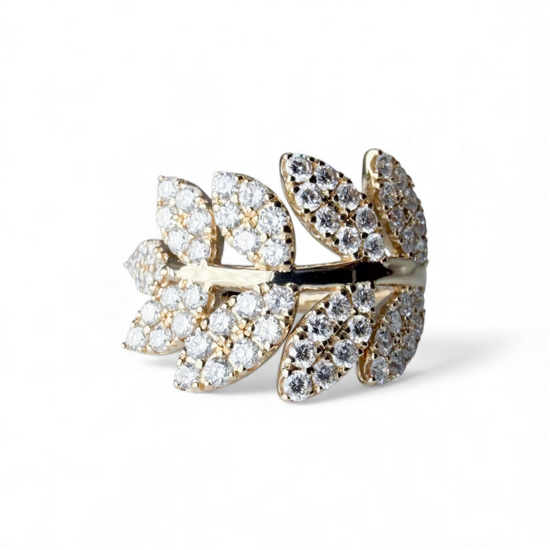 14k Yellow Gold Lab Diamond Leaf Fashion Ring