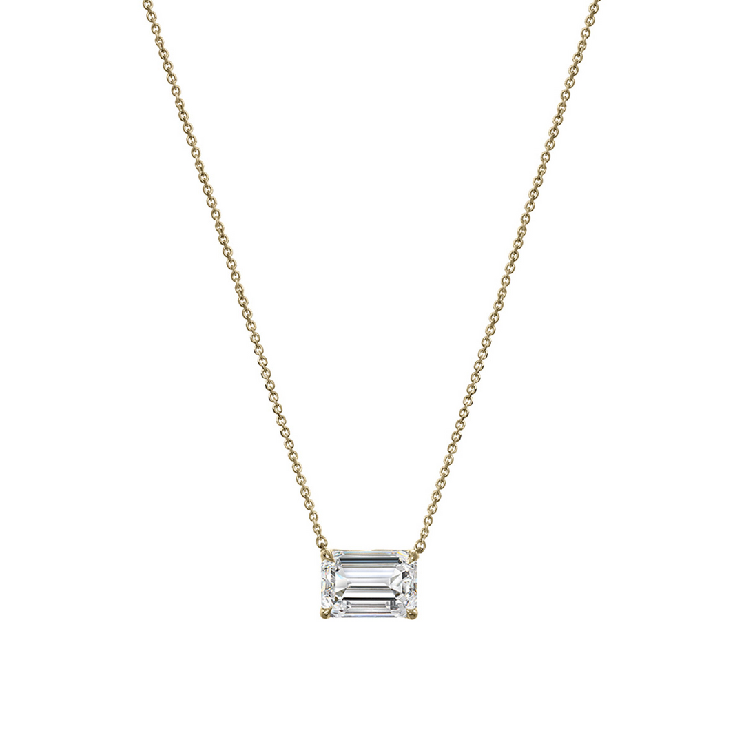 14k Yellow Gold Emerald Cut Lab Grown Diamond Necklace