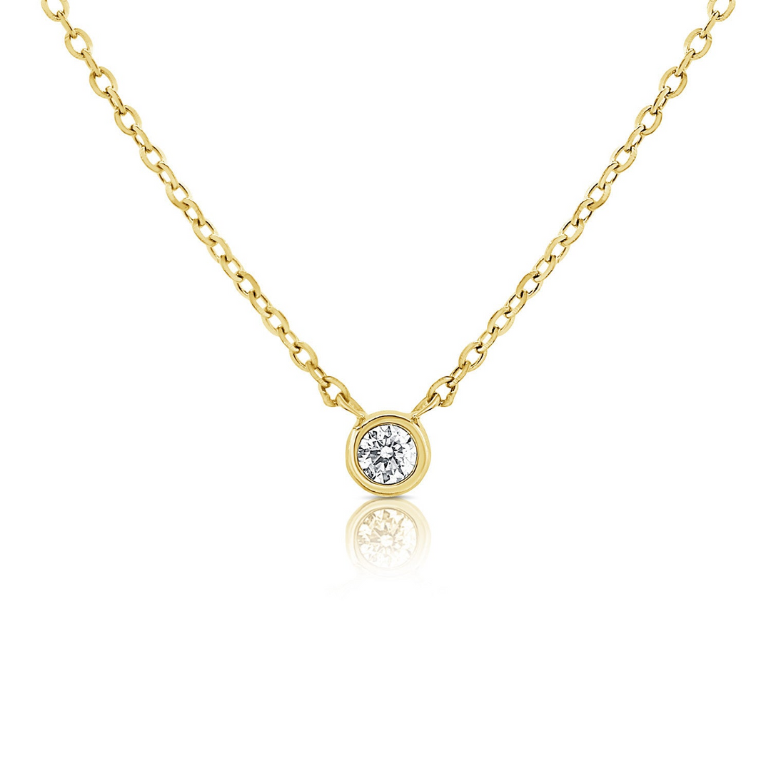 14k Yellow Gold Bezel Lab Grown Diamond Necklace
