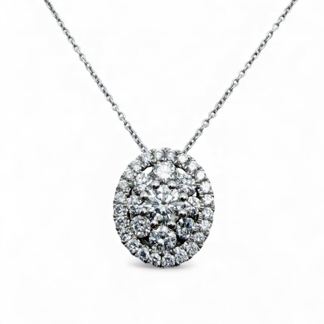 14k White Gold Diamond Cluster Diamonds Estate Necklace