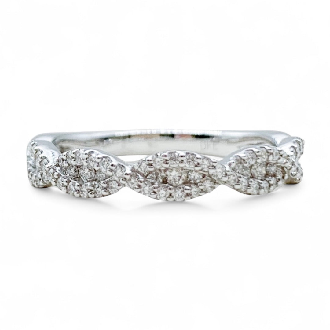 14k White Gold Twist 0.20ctw Round Diamond Wedding Band