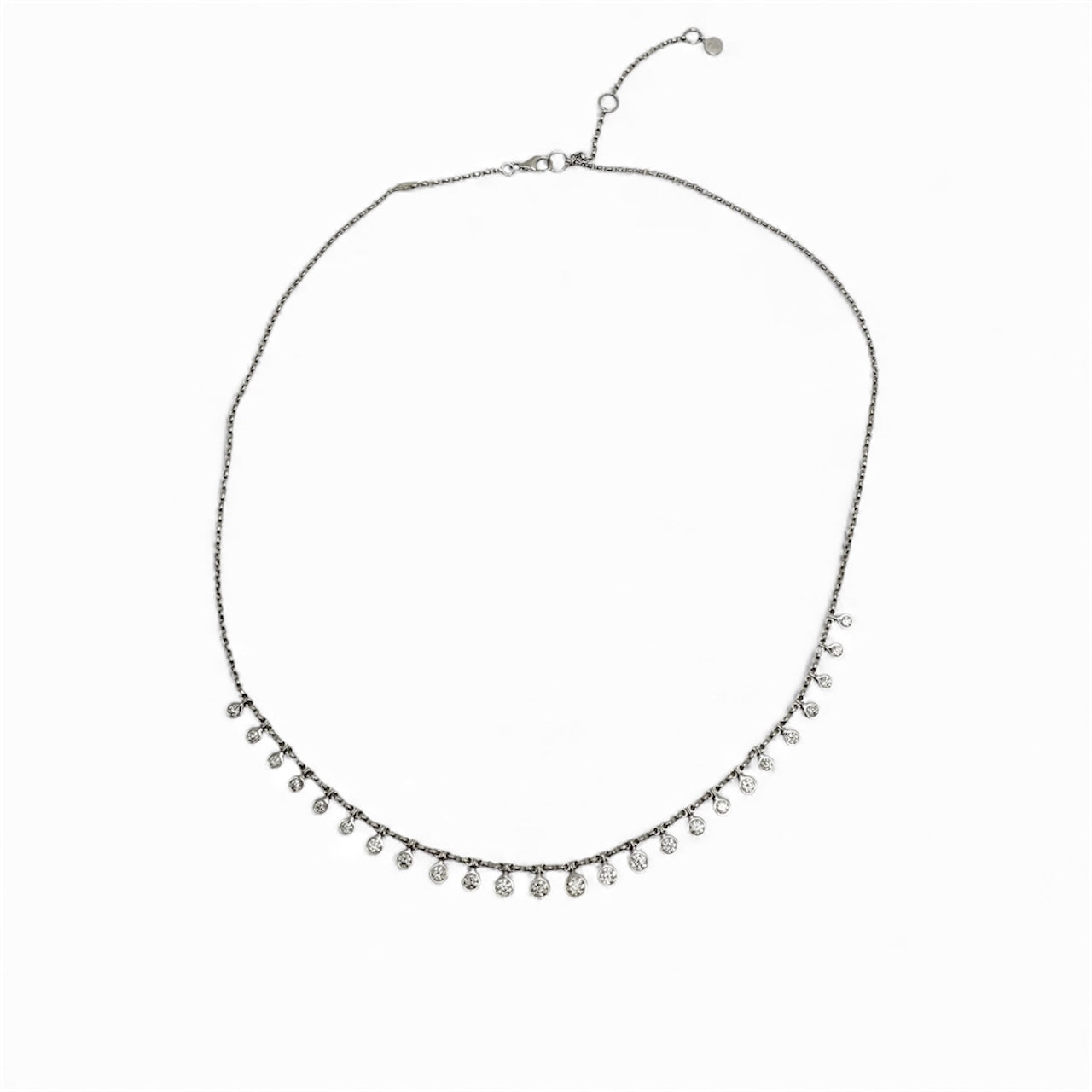 This 14k white gold dangle chain necklace features 1.33ct of sparkling round natural diamonds set in elegant bezels set gracefully along the chain. Adjustable from 16–18 inches for perfect layering, it weighs 3.6 dwt and offers a refined, modern shimmer—an effortless luxury piece for any jewelry collection.