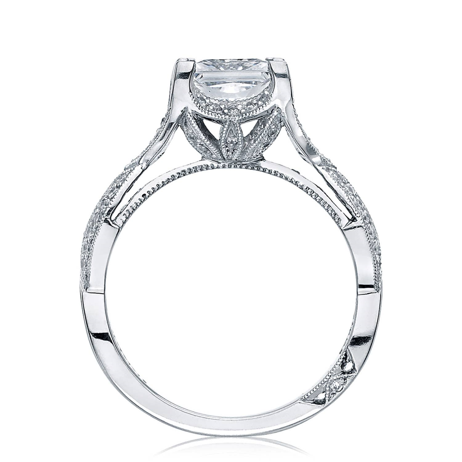 This elegant 18K white gold Tacori diamond engagement ring features a total of 0.21cttw of round diamonds, showcasing Tacori's signature craftsmanship and attention to detail. The delicate setting enhances the diamonds' brilliance, making it a timeless symbol of love and commitment. Sized at 6 1/2 and weighing 2.1 dwt, this ring is a refined and sophisticated choice for anyone seeking a classic yet luxurious engagement piece.