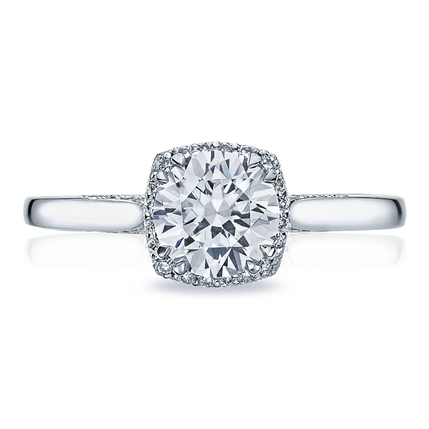 Platinum Tacori (style 2620) Diamond Halo Engagement Ring w. 0.13cttw sides and a 1.02ct GSI1 August Vintage Cushion Center Diamond AGS Graded #104067716005.