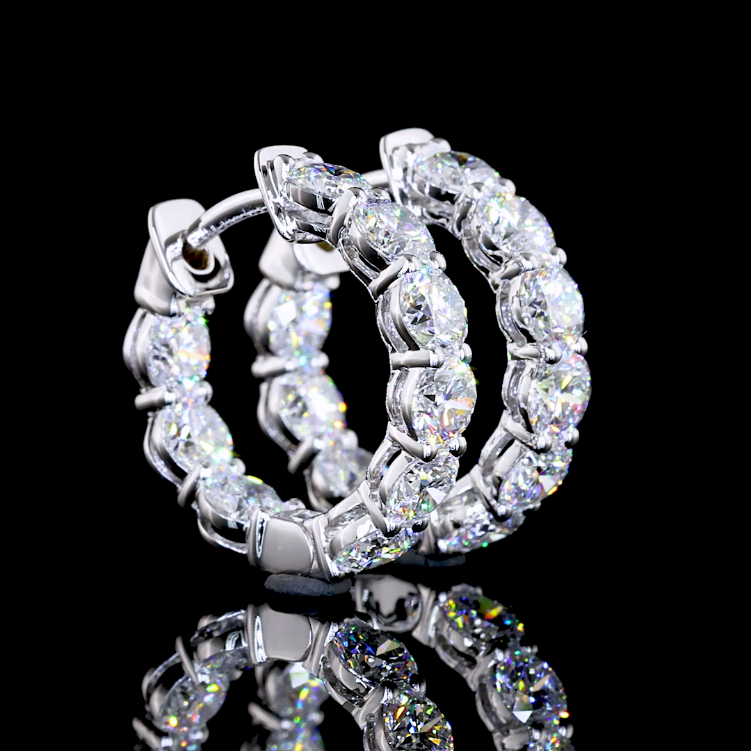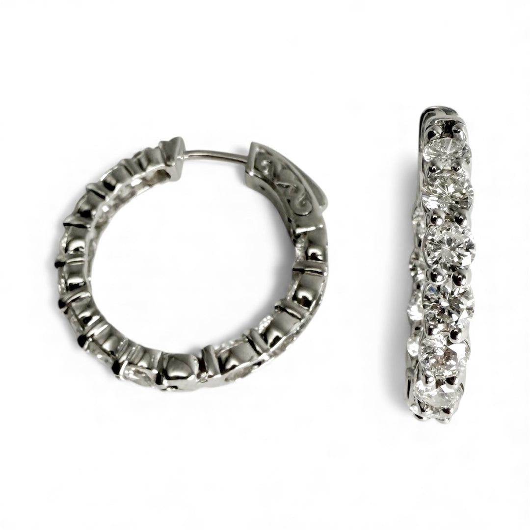 14k White Gold Medium Hoop Diamond Earrings 3.41 cttw