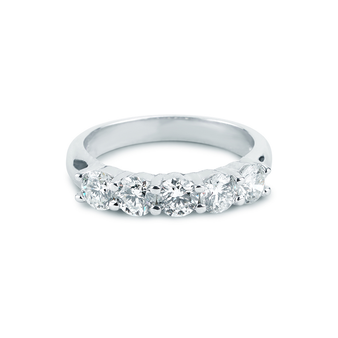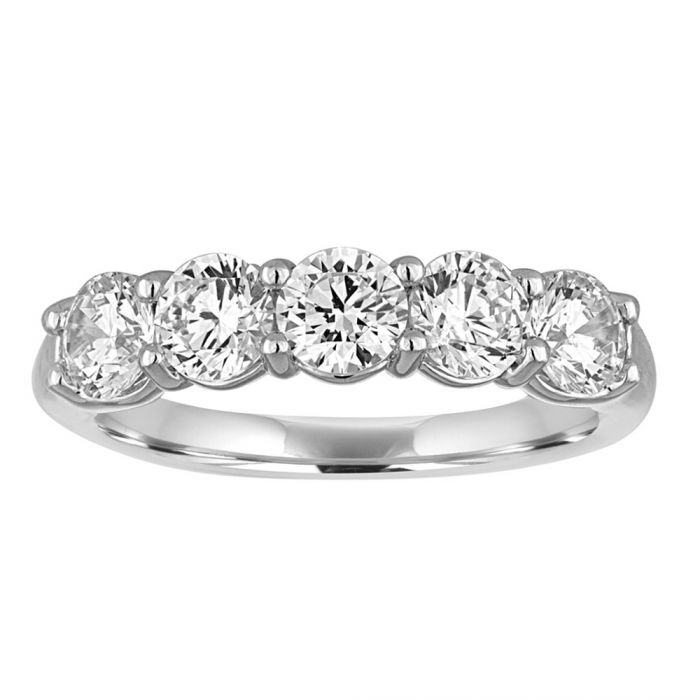 14k White Gold 5 Stone 2.00ctw Emerald Lab Grown Diamond Wedding Band