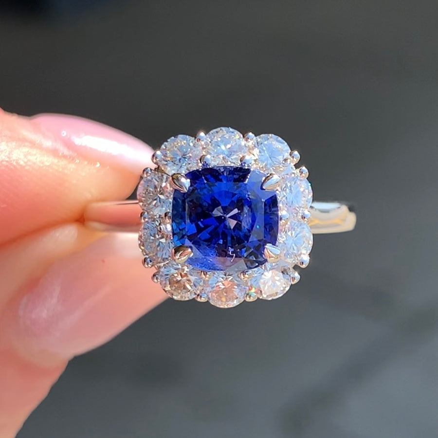 18k White Gold Sapphire Halo Ring