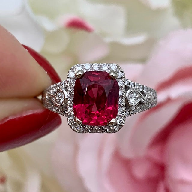 18k White Gold Ruby Halo Ring