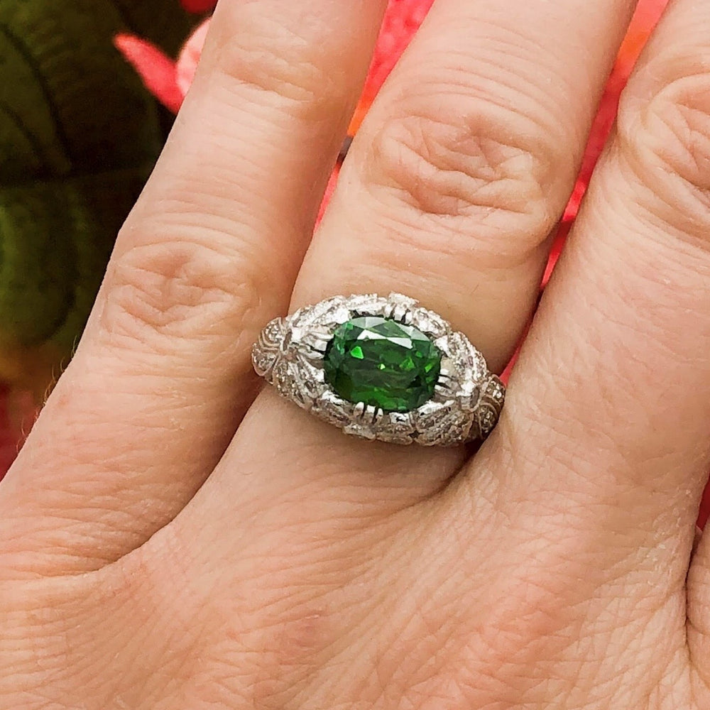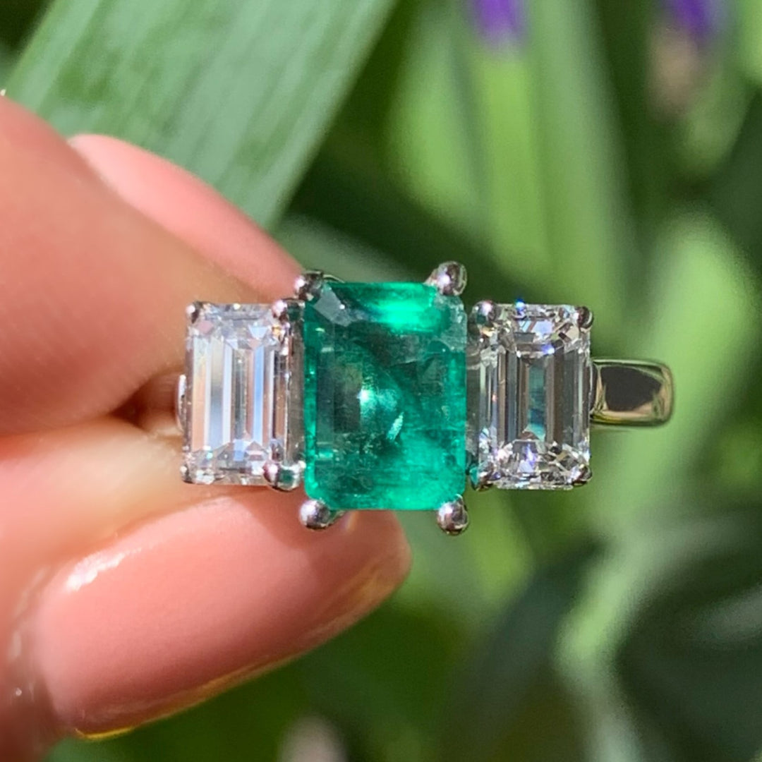 Platinum White Gold Emerald Gemstone Ring