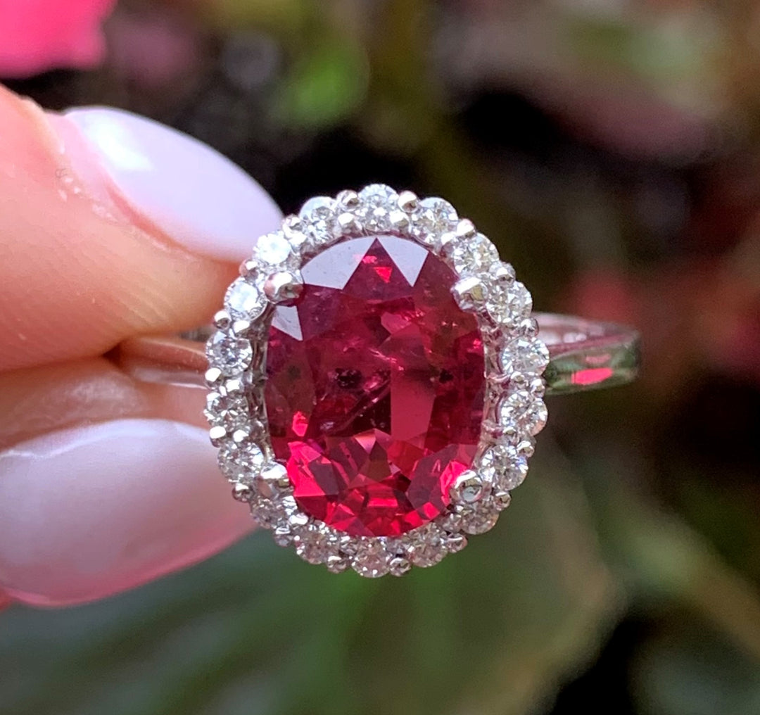 14k White Gold Spinel Diamond Halo Ring
