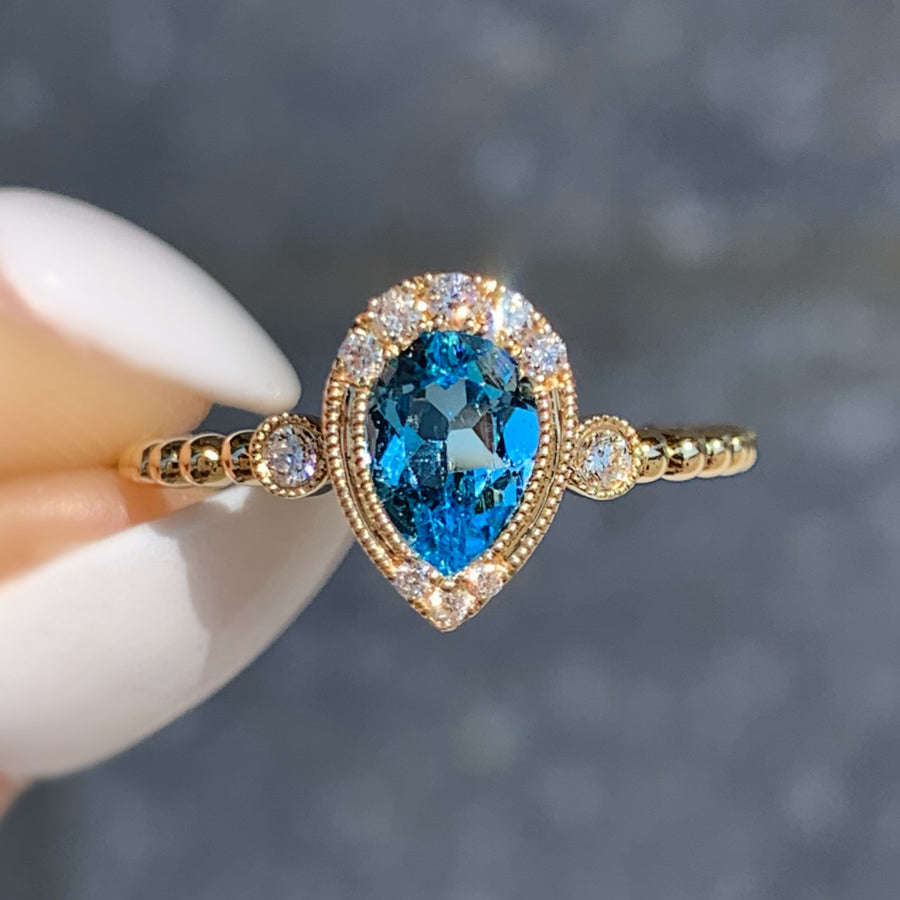 14k Yellow Gold Blue Topaz Gemstone Ring