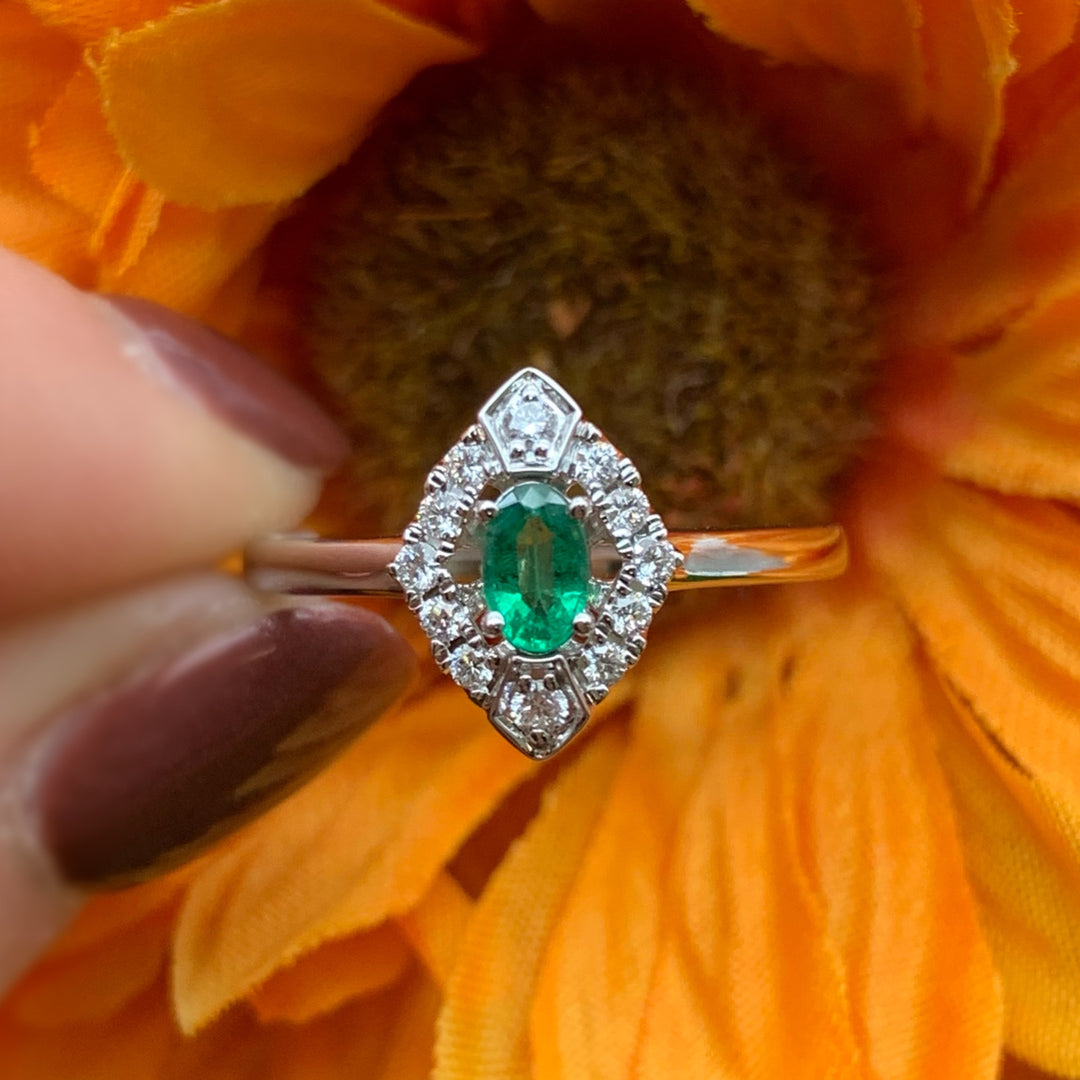 14k White Gold Diamond Emerald Ring