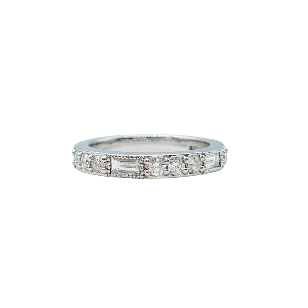 14k White Gold Curved Prong Set 0.79ctw Baguette Diamond Wedding Band