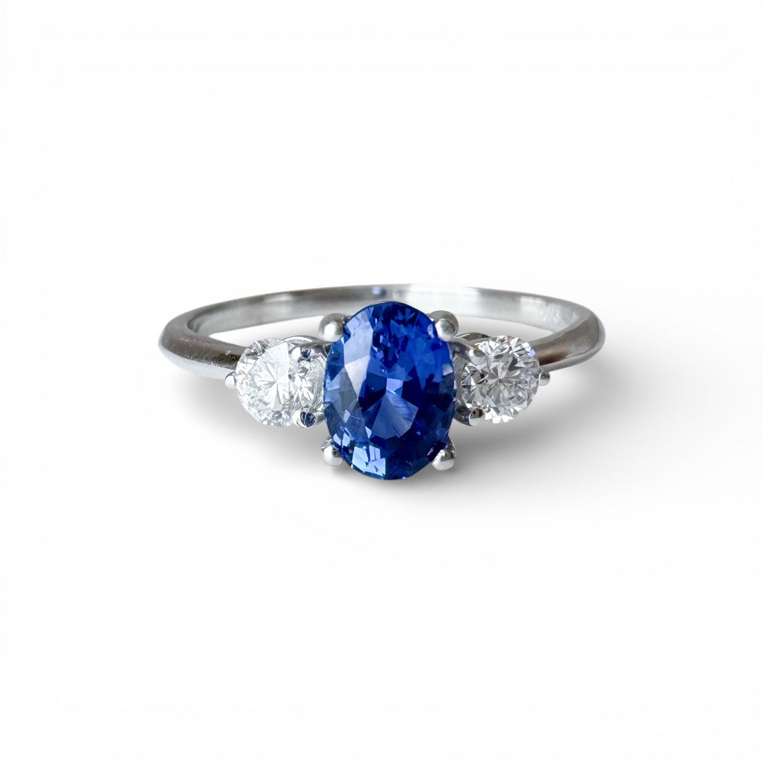 14k White Gold 3 Stone Sapphire Diamond Ring