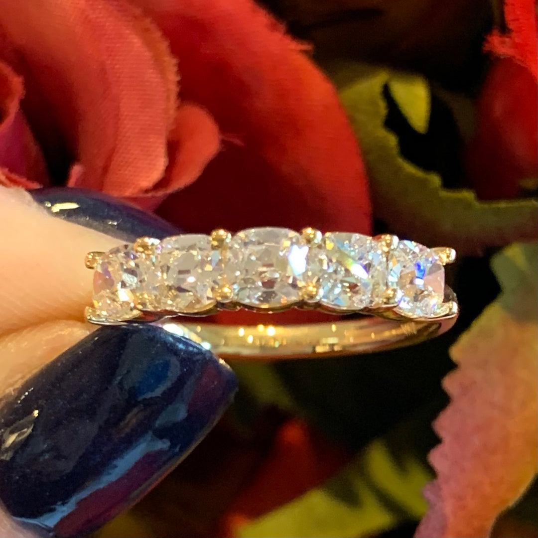 18k Yellow Gold Shared Prong 1.36ctw August Vintage Cushion Lab Grown Diamond Wedding Band