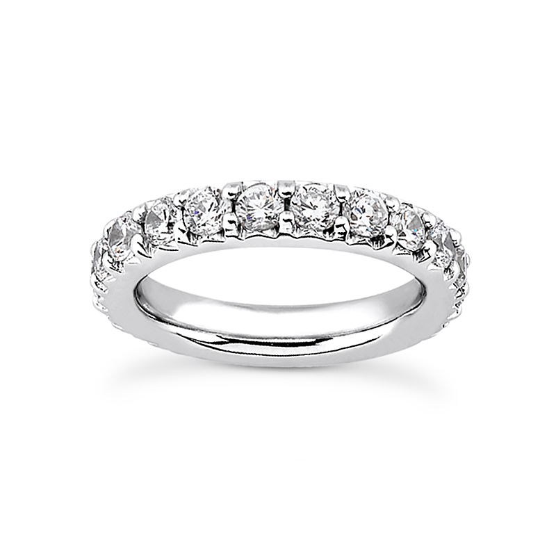 14k White Gold Prong Set 0.90ctw Round Diamond Wedding Band