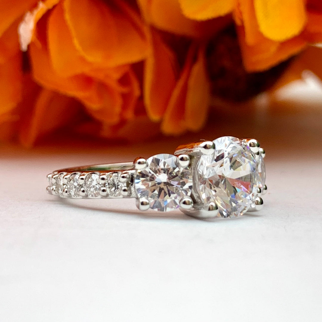 14k White Gold 3 Stone Lab Grown Diamond Engagement Ring 2.00 cttw