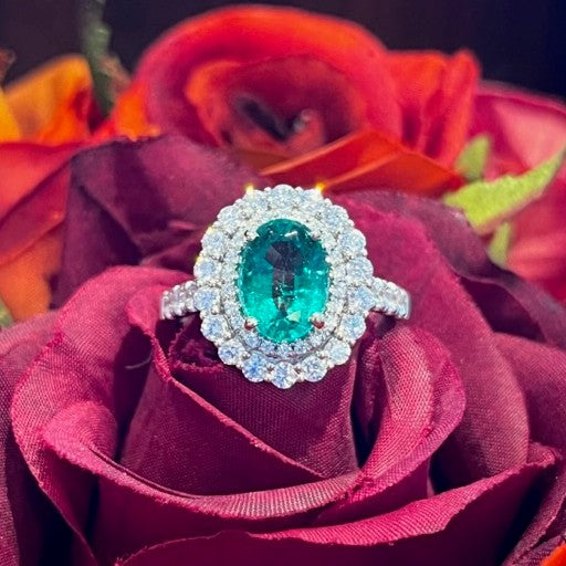 18k White Gold Emerald Halo Ring