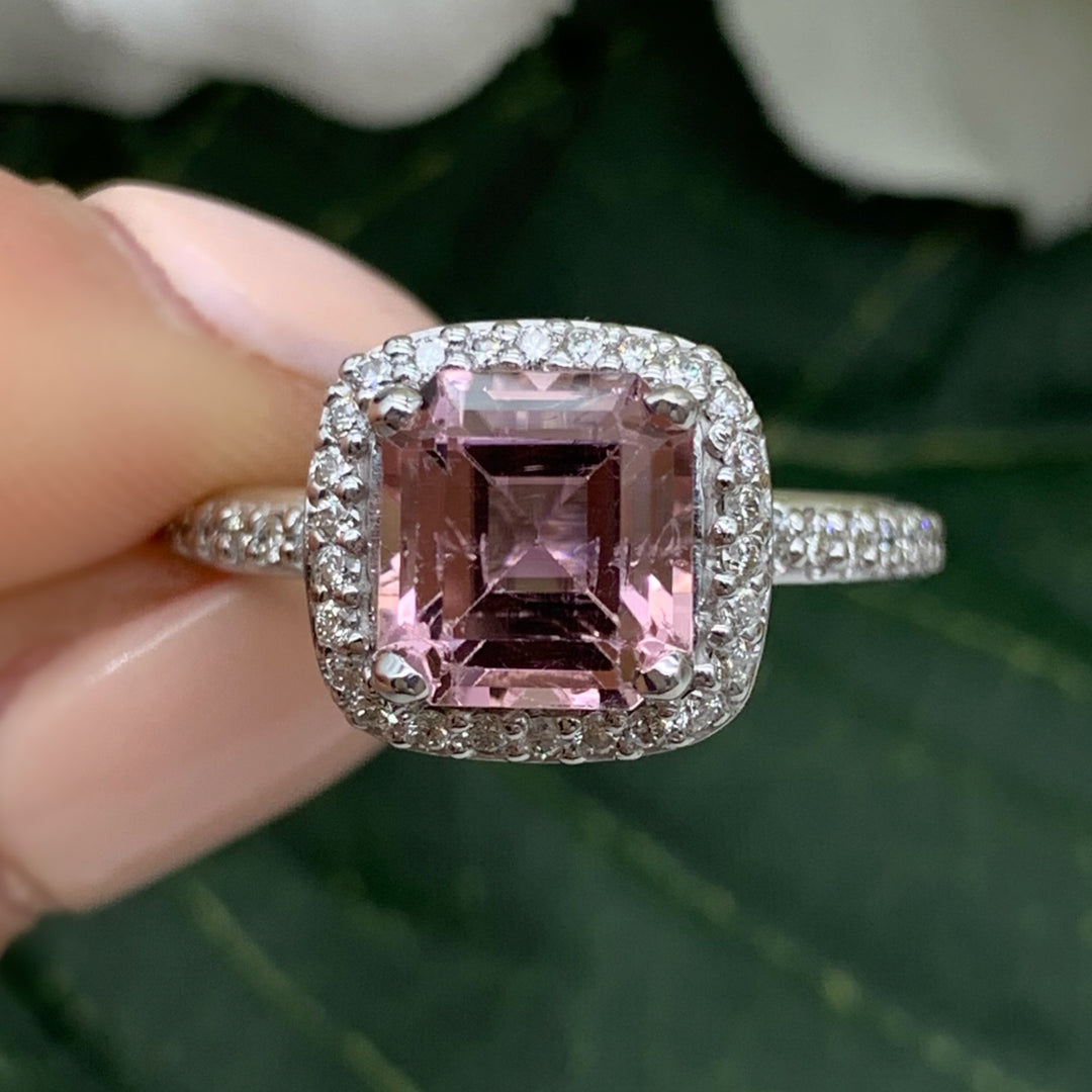 14k White Gold Spinel Diamond Halo Ring
