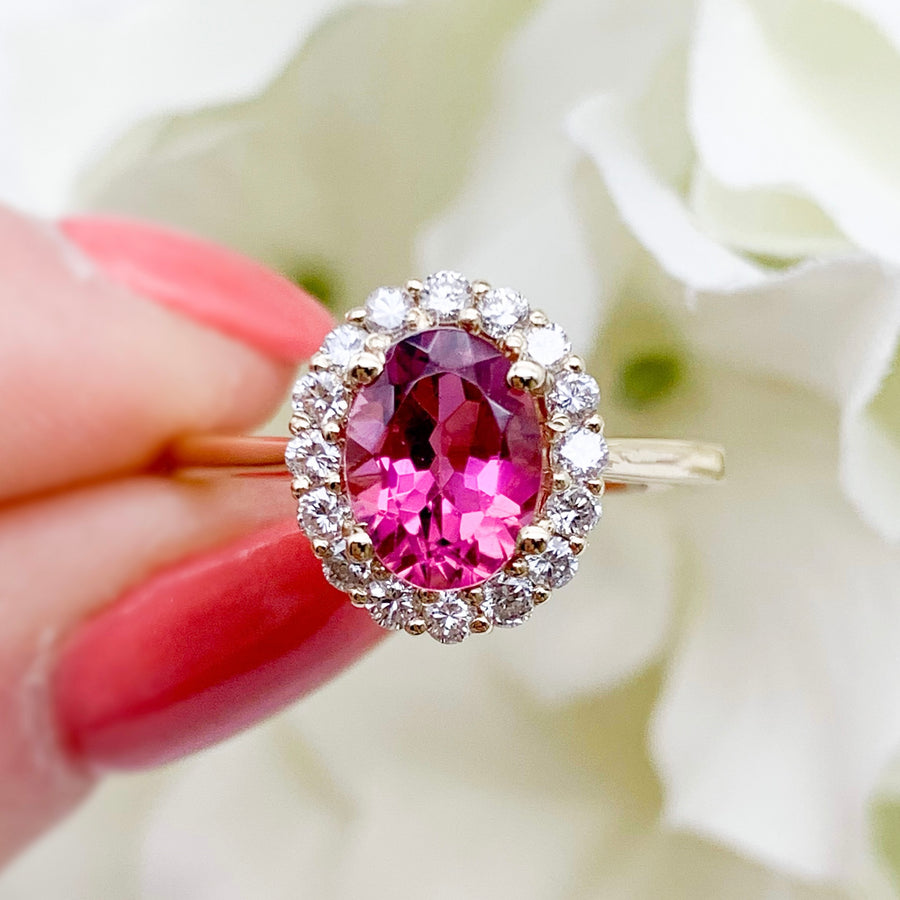 14k Yellow Gold Tourmaline Halo Ring