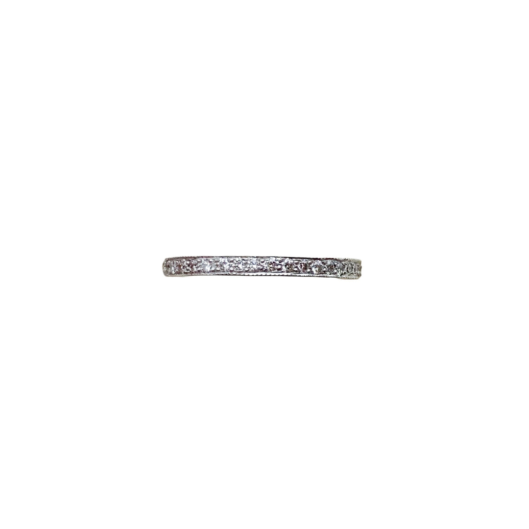 14k White Gold Antique Style 0.48ctw Round Diamond Wedding Band