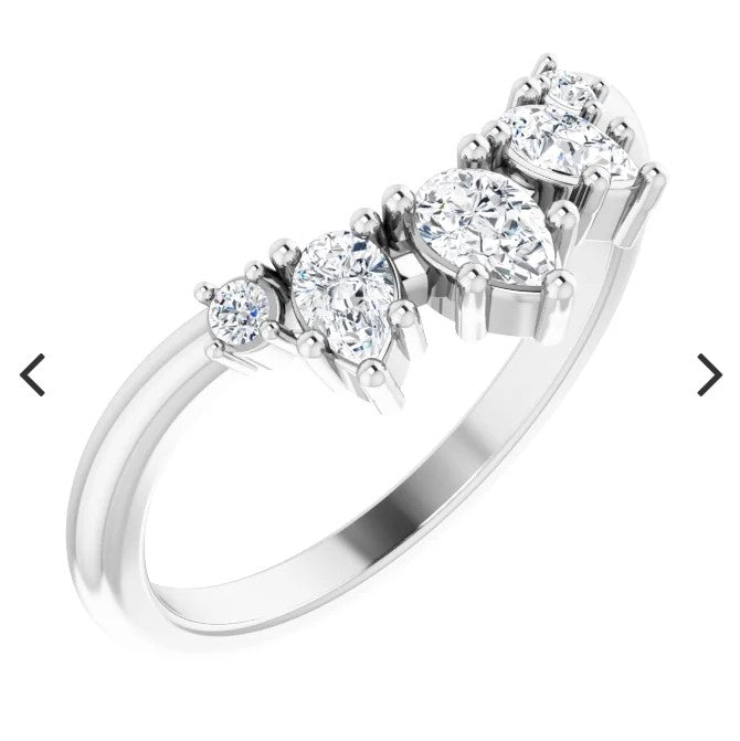 14k White Gold Curved Prong Set 0.37ctw Pear Diamond Wedding Band