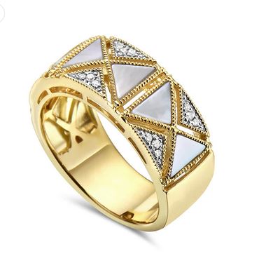 14k Yellow Gold Mother Of Pearl Geometric Ring