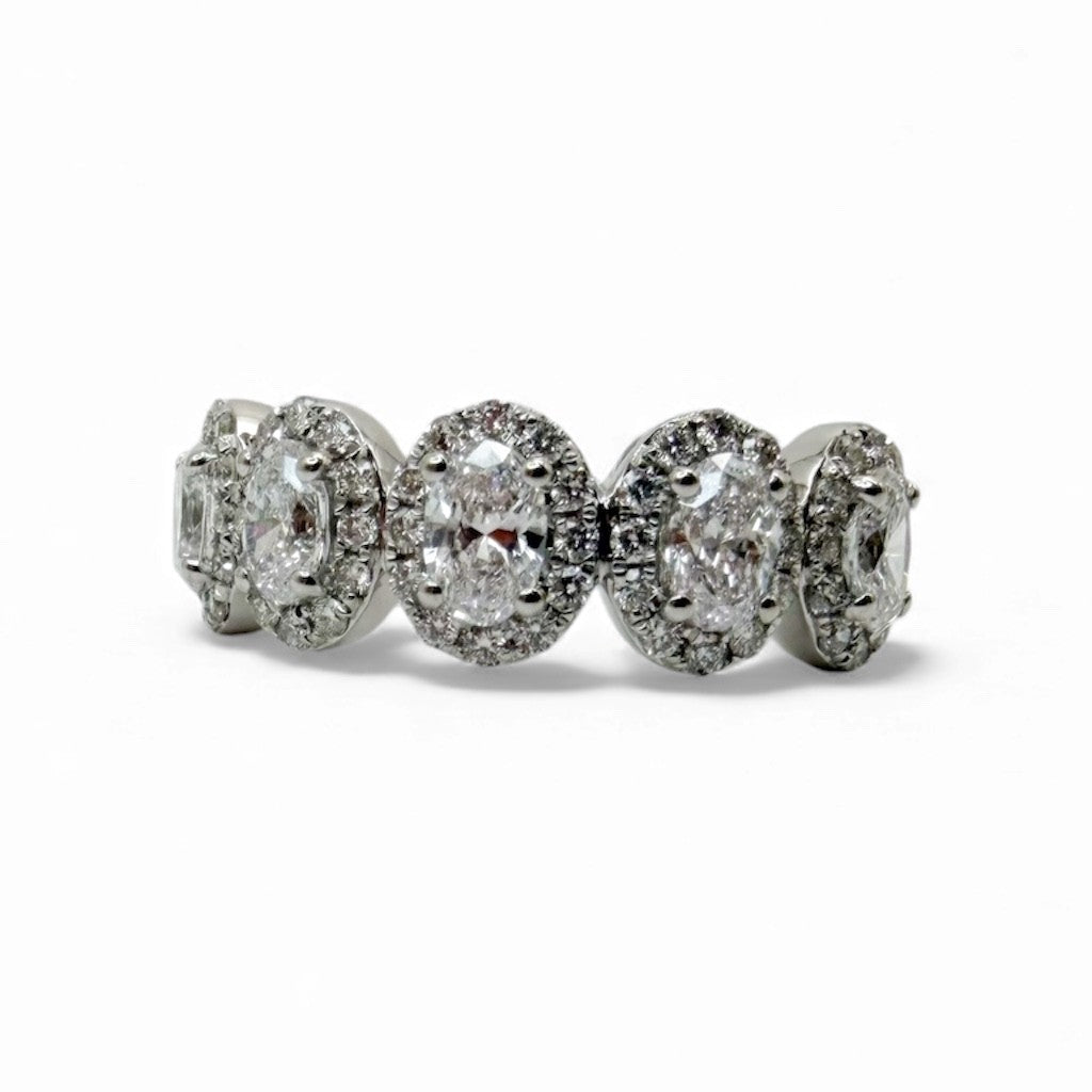 14k White Gold 5 Stone 1.50ctw Oval Halo Diamond Wedding Band