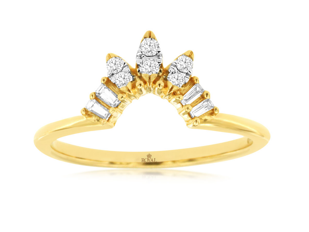 14k Yellow Gold Curved Prong Set 0.15ctw Round Diamond Wedding Band