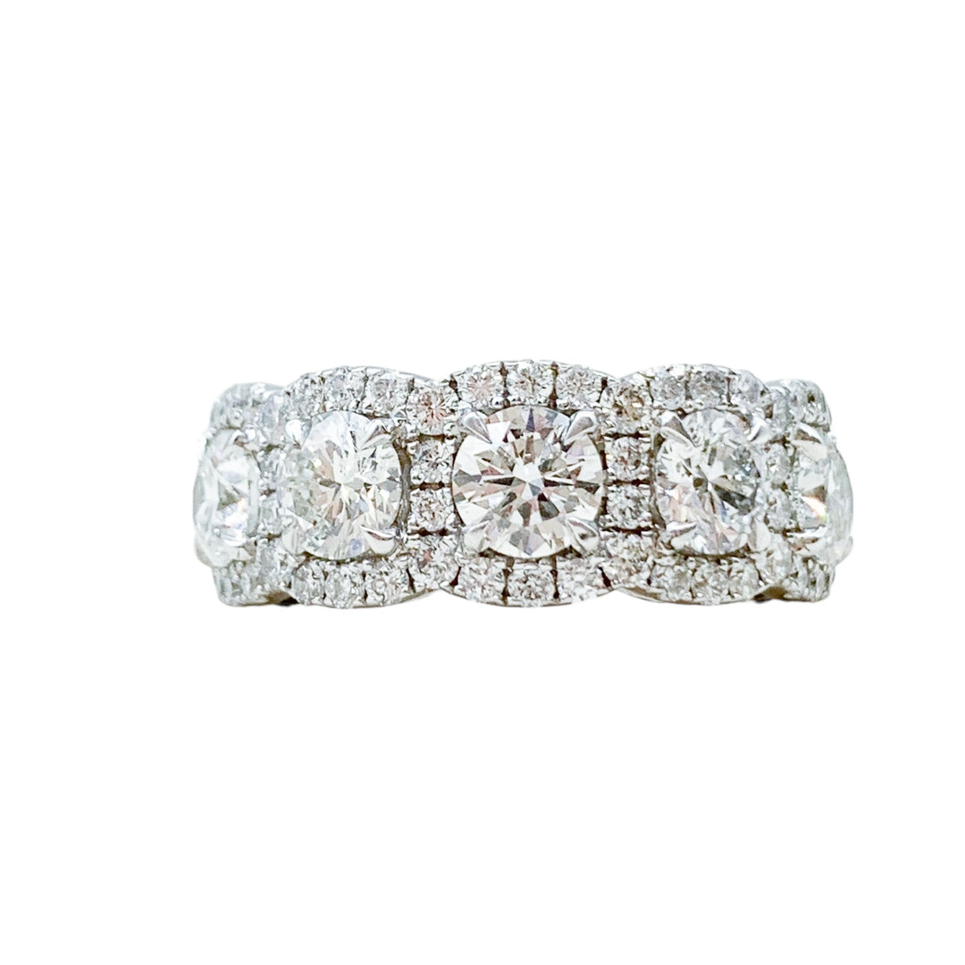 18k White Gold 5 Stone 2.55ctw Round Diamond Wedding Band