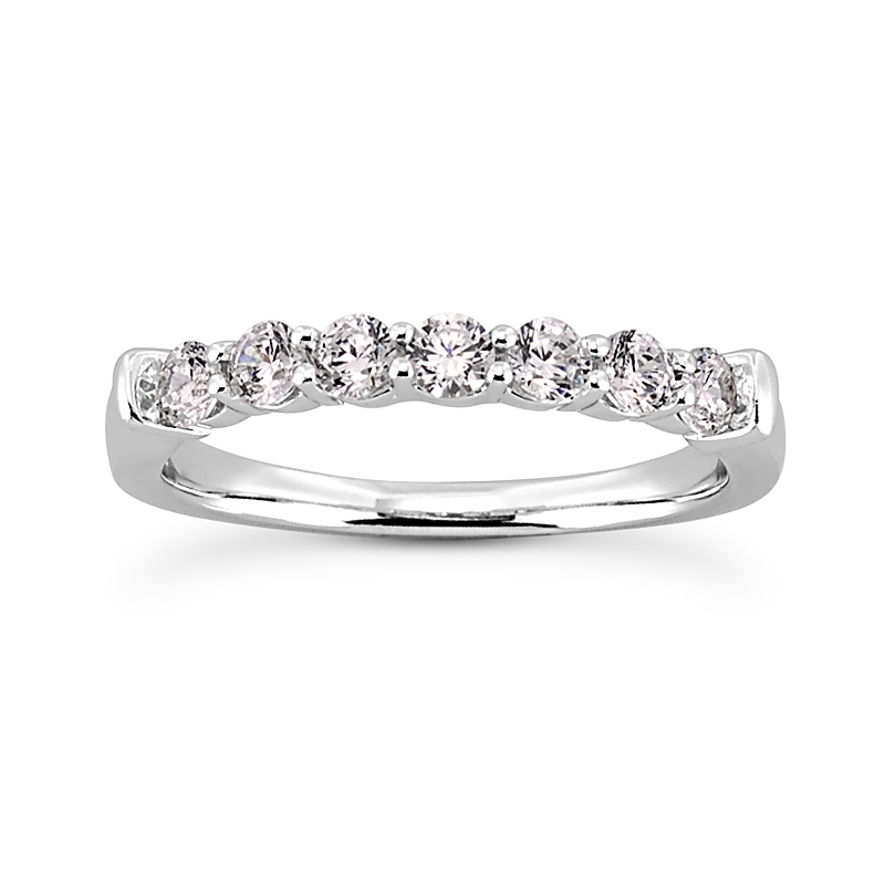 14k White Gold 7 Stone Diamond Band 0.74ctw Round Diamond Wedding Band