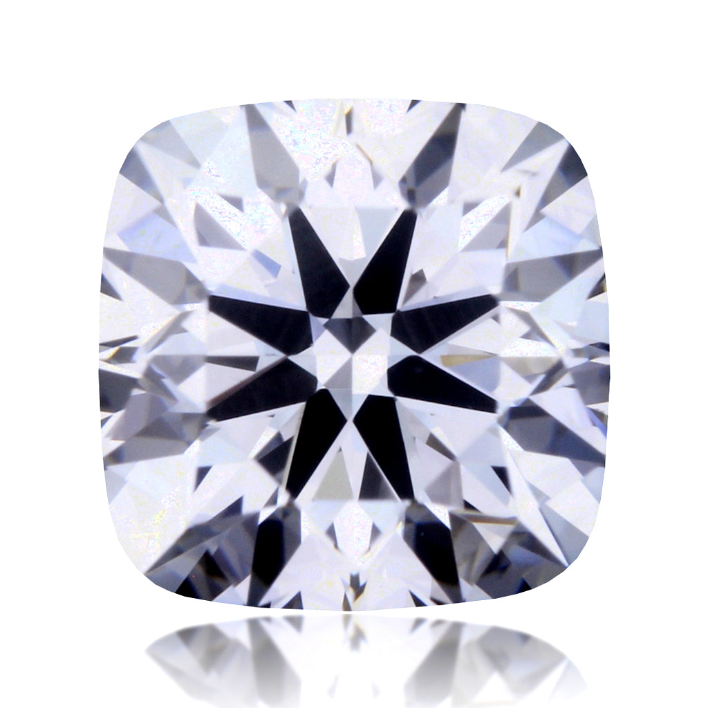Cushion shaped cut diamond with a hearts & arrows pattern while achieving the genuine cushion brilliant cuts